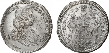 Wybity na rok przed opuszczeniem Śląska przez Karola w czasie wojny trzydziestoletniej, podczas której schronił się na dworze Zygmunt III Wazy.