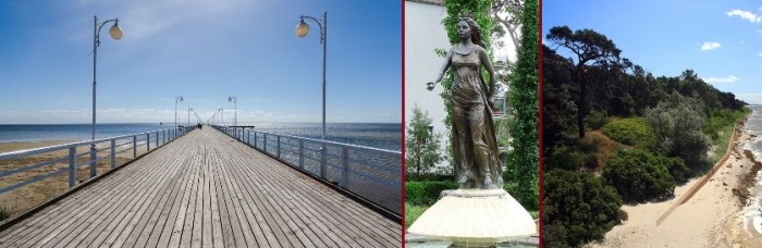 Jurata / Molo; pomnik bogini Juraty; plaża od strony Zatoki Puckiej – fot. WIKIPEDIA
