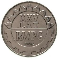 Inny przykład to projekt monety okolicznościowej na 25-lecie RWPG (Rady Wzajemnej Pomocy Gospodarczej - tworu zamysłu Stalina, który wykorzystując pomysł Mołotowa, swojego ministra spraw zagranicznych, chciał stworzyć odpowiedź na plan Marshalla, który zakładał pomoc USA w odbudowie państw zniszczonych w czasie II wojny światowej). Było więc to ważne wydarzenie z punktu widzenia władzy ludowej dbającej o propagandowy wizerunek swojego systemu. Do projektu monety na tę okoliczność przystąpił Józef Markiewicz tworząc w 1974 r. monetę przedstawiającą na rewersie koło składające się w połowie ze słonecznika (symbol rolnictwa) i w połowie z koła zębatego (symbol przemysłu), jednak z niebyt czytelnym napisem "XXV LAT", który ginął wśród nasion słonecznika. Projekt po wygładzeniu tła został jednak przyjęty i bito według jego wzoru monetę okolicznościową.
