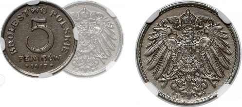 Przepiękny egzemplarz rzeczywistego "jednostronnego" bicia. Tzw. "brockage", brakteatowe bicie - na niezdjętą ze stempla monetę położono kolejny krążek i uderzono ponownie stemplami. W efekcie czego mamy monetę z awersem i jego negatywową, wklęsłą odbitką z drugiej strony.