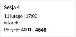 . Finałowa licytacja odbędzie się w dniach 8-13 lutego 2020 r., pierwszy dzień w hotelu Marriott i na żywo przez internet. Pięć kolejnych sesji, w dniach 9-13 lutego to aukcje internetowe. SESJA I - 08.02.20, godz. 10:00; SESJA II - 09.02.20, godz. 12:00; SESJA III-VI – 10-13.02.20, godz. 17:00.