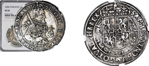 90 – RR-, Zygmunt III Waza, Półtalar 1630, Bydgoszcz, BARDZO RZADKI NOMINAŁ, T.50mk, R6