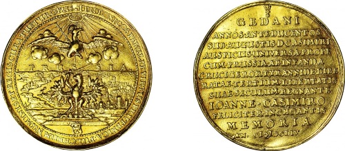 Najwyższej klasy numizmat, bity w złocie z przeznaczaniem dla króla i jego świty. Trzy i pół wieku po wybiciu medal ten niezmiennie uznawany za arcydzieło sztuki medalierskiej, zdobi strony albumu "100 rarytasów numizmatycznych w Muzeum Narodowym w Krakowie" gdzie zaprezentowano egzemplarz ze zbiorów hr. Emeryka Hutten-Czapskiego. Trudno o lepszą rekomendację, skoro taki medal znalazł się w pierwszej setce najwybitniejszych numizmatów z kolekcji hrabiego. Jesteśmy przekonani, że nabywca tego egzemplarza, bezdyskusyjnie zaliczy go do setki swoich najlepszych numizmatów, a nawet medal zajmie dużo lepszą pozycję w jego zbiorze.