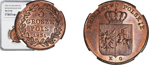420 – Powstanie Listopadowe, 3 grosze 1831, WYŚMIENITE, kolor RB