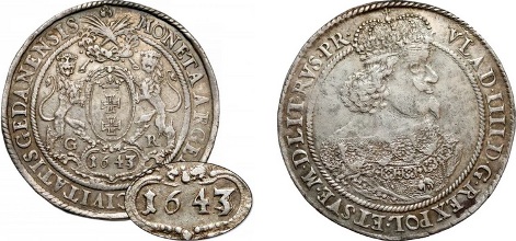 779. Władysław IV Waza, Talar Gdańsk 1643 - RZADKOŚĆ