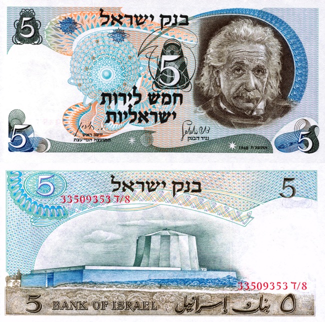 11 – IZRAEL (1968) / 5 ISRAELI LIROT - Albert Einstein - Nobel Physics 1921 (Banknote Israel)