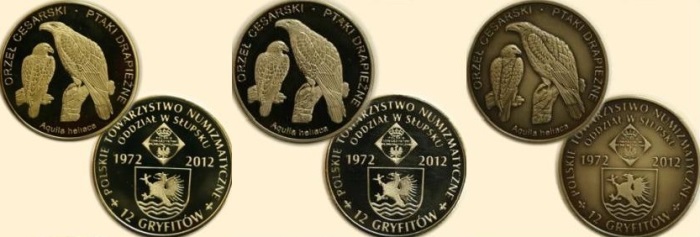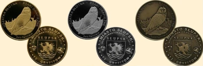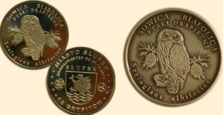 – GRYFITY (2010-2014) / Serie: „Ptaki drapieżne” oraz „Sowy Europy” (Słupskie żetony kolekcjonerskie, emitent: Urząd Miejski w Słupsku, producent: Mennica Kresowa - Białystok)
