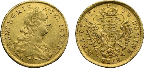 263 – Austria, Franciszek I, 1 dukat 1753 CA, Karlsburg