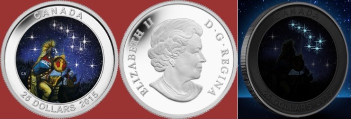 Kanada wyemitowała srebrną monetę kolekcjonerską „Mapa nieba - Wielki Wóz”. Jest to pierwsza moneta z nowej serii prezentującej najpiękniejsze i najbardziej charakterystyczne gwiazdozbiory wszechświata. Konstelacja, wyryta w uncji srebra (Ag.999,9) zachwyca nie tylko precyzją wykonania. Tym, co czyni ten numizmat szczególnie wyjątkowym, jest przede wszystkim fakt, że wszystkie siedem gwiazd świeci w ciemności. Wielki Wóz to jedna z konstelacji Wielkiej Niedźwiedzicy. Ponieważ moneta inspirowana jest wierzeniami Indian, na numizmacie widnieje także dwójka wojowników, tropiących zagrażającego ich plemieniu niedźwiedzia, który – według legendy – ukrył się na niebie.