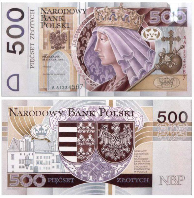 Pojawia się również pytanie czy przy obecnej wymianie pojawi się nowy nominał - 500 złotych? Banknot 500-złotowy z królową Jadwigą był zaprojektowany już przy poprzedniej naszej wymianie pieniędzy związanej z denominacją w 1995 roku. Wówczas jego wprowadzenie nie doszło do skutku. Nie zaistniały ekonomiczne względy do wprowadzenia tak wysokiego nominału. Jednak obecnie, po tych minionych osiemnastu latach takie rozwiązanie może być zastosowane.