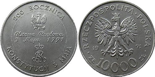 2. 10000 ZŁOTYCH 1991 (200. ROCZNICA KONSTYTUCJI 3 MAJA)