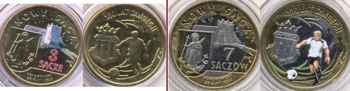 W roku 2014 pojawiły się wersje - 3 SĄCZE i 7 SĄCZÓW z tampondrukiem. Są to żetony uzupełniające serię. Żetony te powstały na bazie tych, które się nie sprzedały z wersji mosiężnej i bimetalowej. Nie podano nakładu tych żetonów.