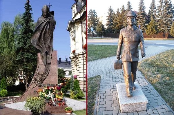 Nowy Sącz, pomnik Jana Pawła II w Nowym Sączu, umiejscowiony jest na rynku, obok ratusza;