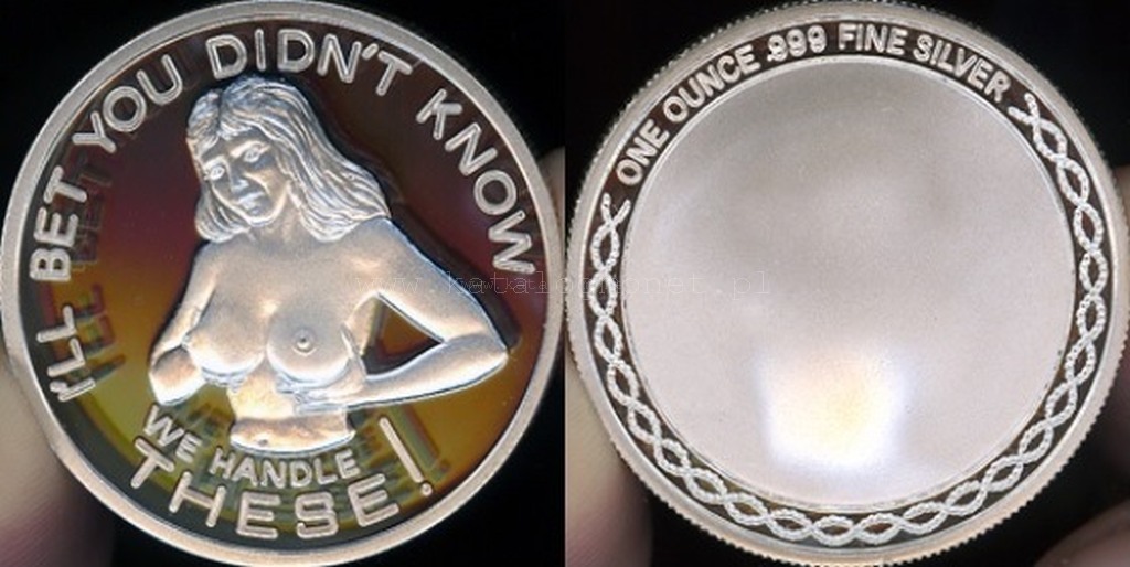 - ŻETON (I'll Bet You Didn't Know, We Handle These!) / Materiał – srebro (Ag.999), waga – 1 uncja, średnica – 39 mm