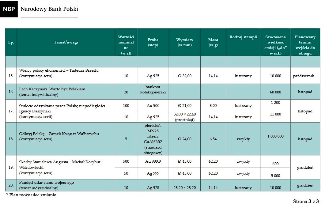 Link: Plan emisji wartości kolekcjonerskich i monet okolicznościowych na 2021 r.