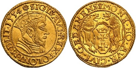Dukaty ostatnich Jagiellonów są jednymi z najrzadszych monet polskiej numizmatyki. Wyróżniamy kilka odmian z różnymi zapisami miasta Gdańsk w legendzie otokowej rewersu. Oferowana odmiana z końcówką GEDANENS.