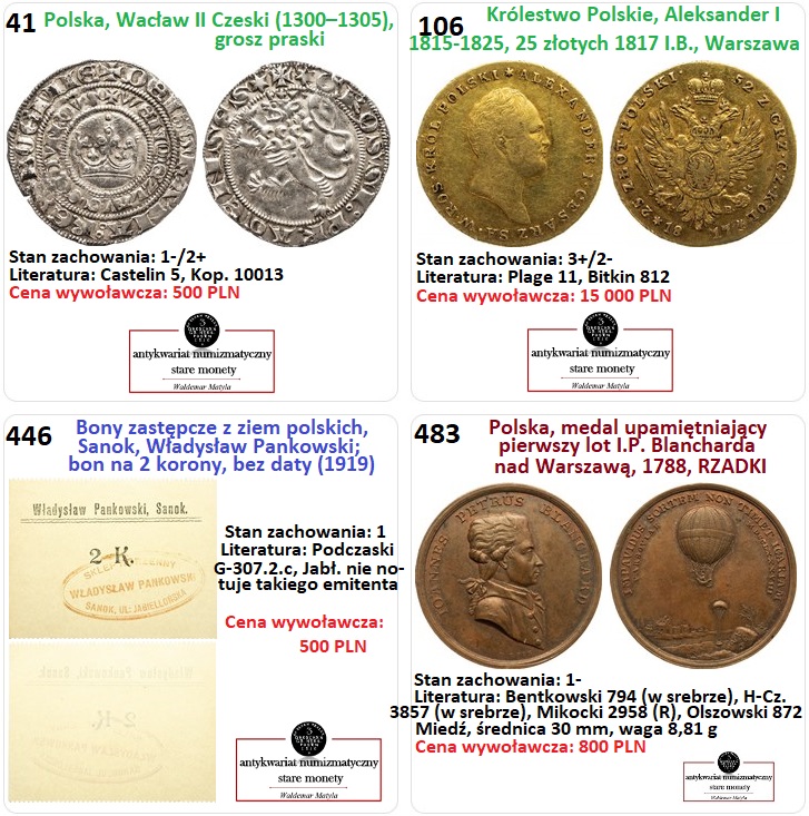 wcn_533eW dniu 22 września 2022 roku (czwartek) odbędzie się E-aukcja 533: Literatura, monety złote, antyczne, średniowieczne, polskie i zagraniczne, medale. Aukcja rozpocznie się o godz. 20:00. Licytacja ODBĘDZIE SIĘ JEDYNIE W INTERNECIE, NA ŻYWO W PORTALU ONEBID.PL. Składanie limitów online na stronie: https://onebid.pl/pl/auction/-/4023 ber_8-2.